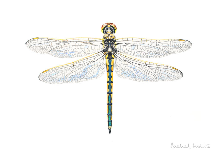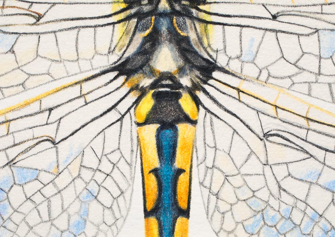 The Australian Emerald Dragonfly (Hemicordulia australiae) is native to Australia – its back shines a beautiful blue/green colour in sunlight. This drawing highlights the beautiful detail and intricacy that can be hard to see when trying to get close to one!