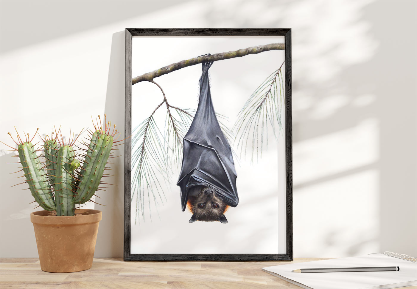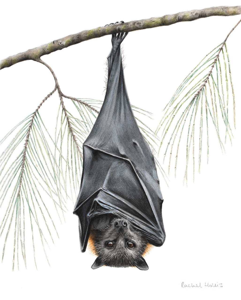 This fine art print features a Grey-headed Flying Fox hanging in a Casuarina tree.