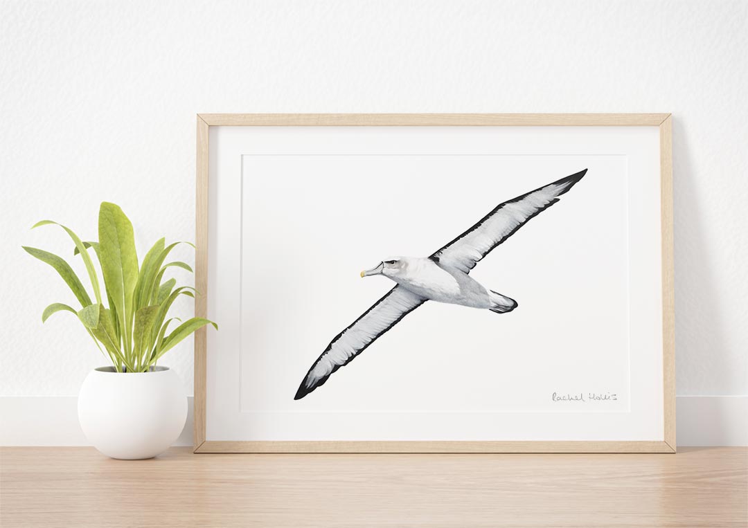 This fine art print features a White-capped Albatross in flight.